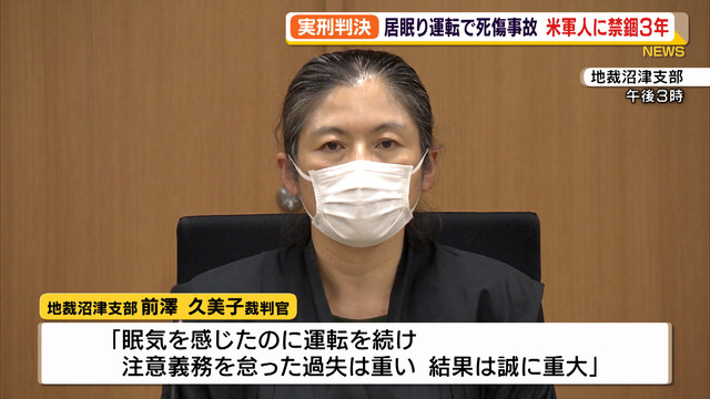居眠り運転で死傷事故 米軍人に禁固3年の実刑判決(静岡県)(静岡放送(SB