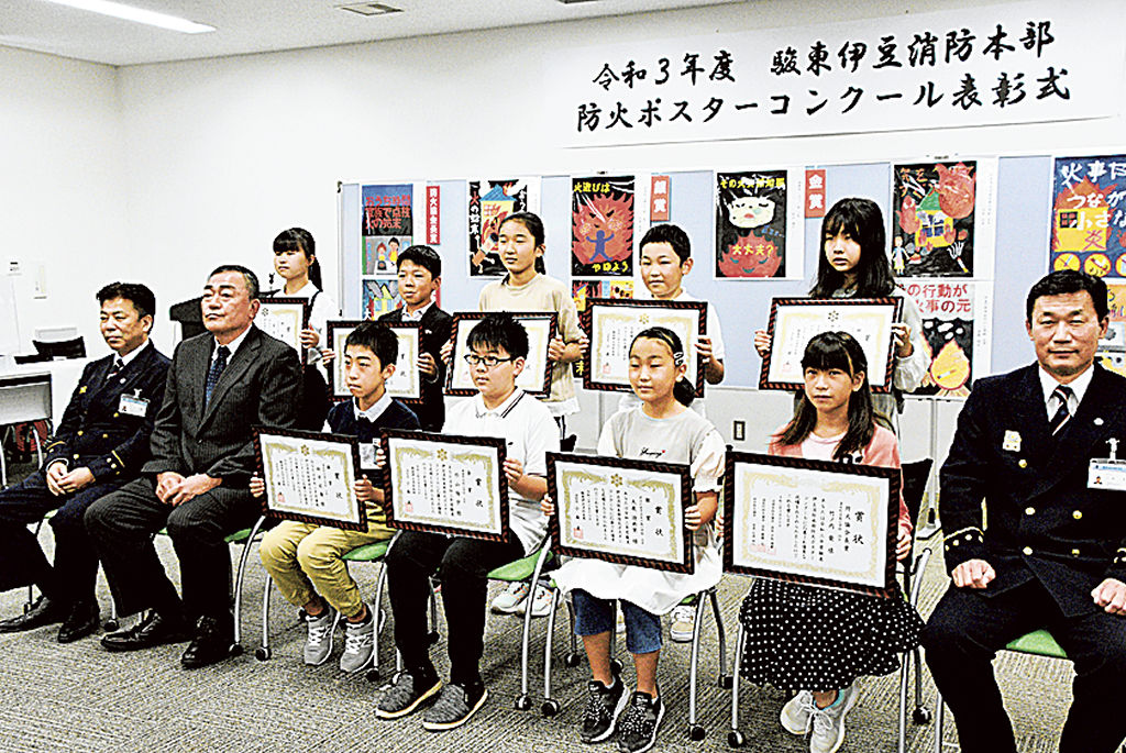金賞に杉山さん(函南西小5) 駿東伊豆消防本部 防火ポスター表彰式 沼津