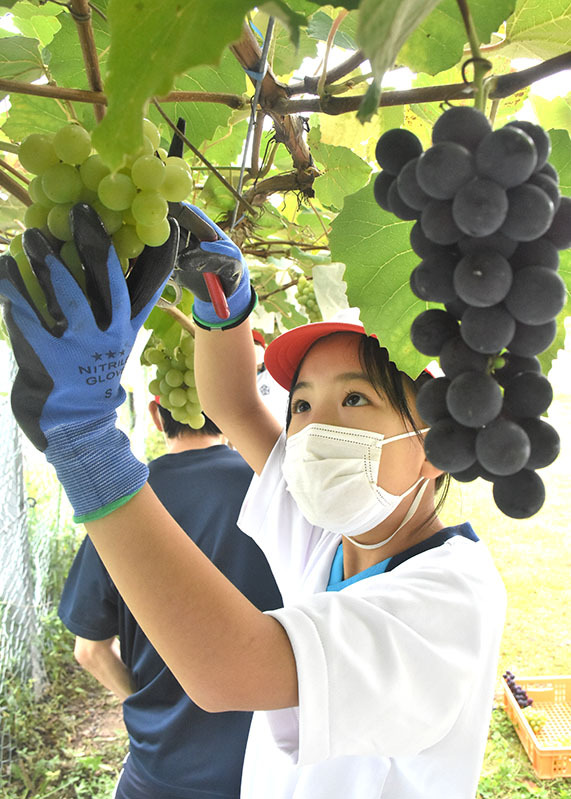 どれが甘いかな 花巻・大迫小4年生がブドウ収穫【岩手】(岩手日日新聞社)