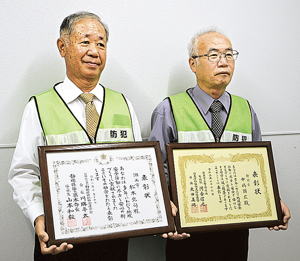 長年の防犯功労たたえる 中嶋さん、松本さん表彰 湖西署|あなたの静岡新聞