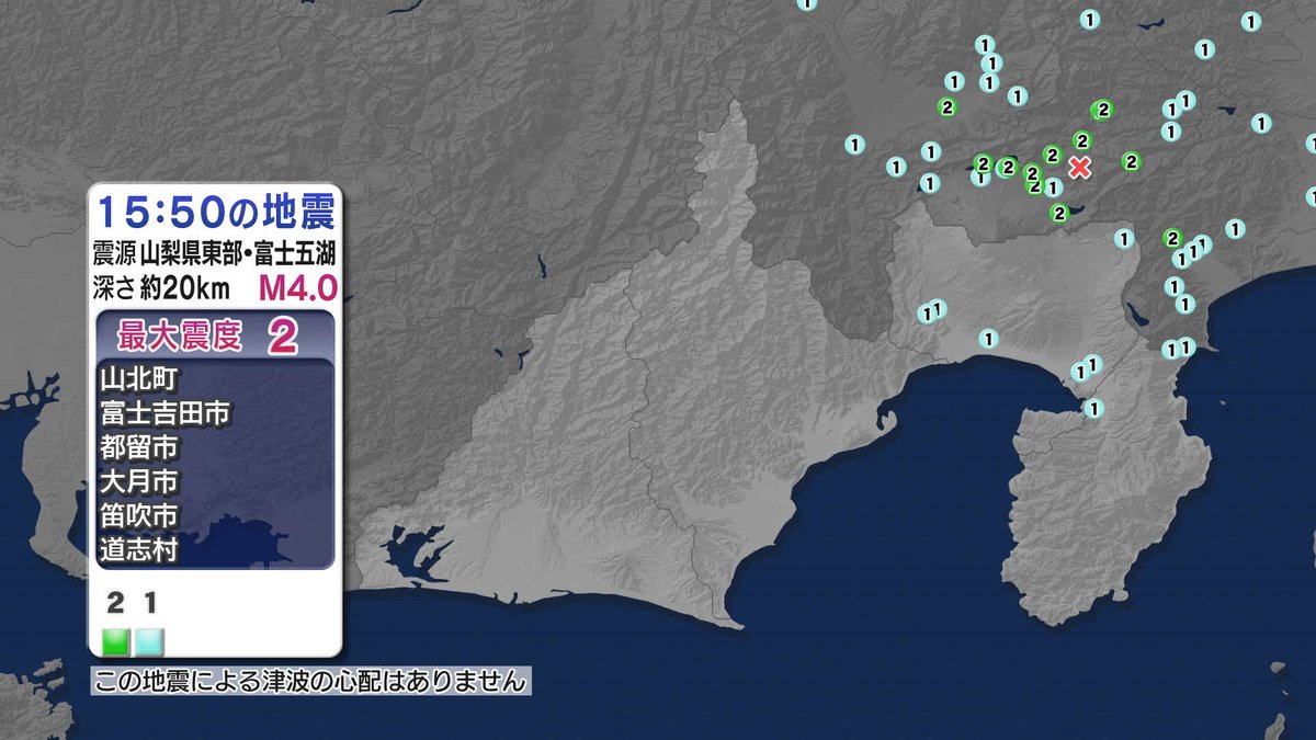 山梨県東部で地震 熱海、三島、富士宮などで震度1(静岡放送(SBS)) - Ya