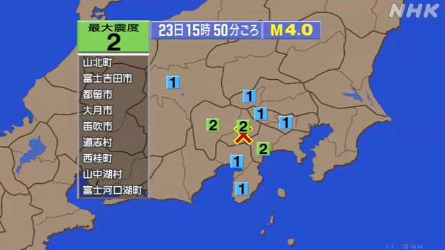 富士吉田市や都留市などで震度2|NHK 山梨県のニュース - https://t.co/f8