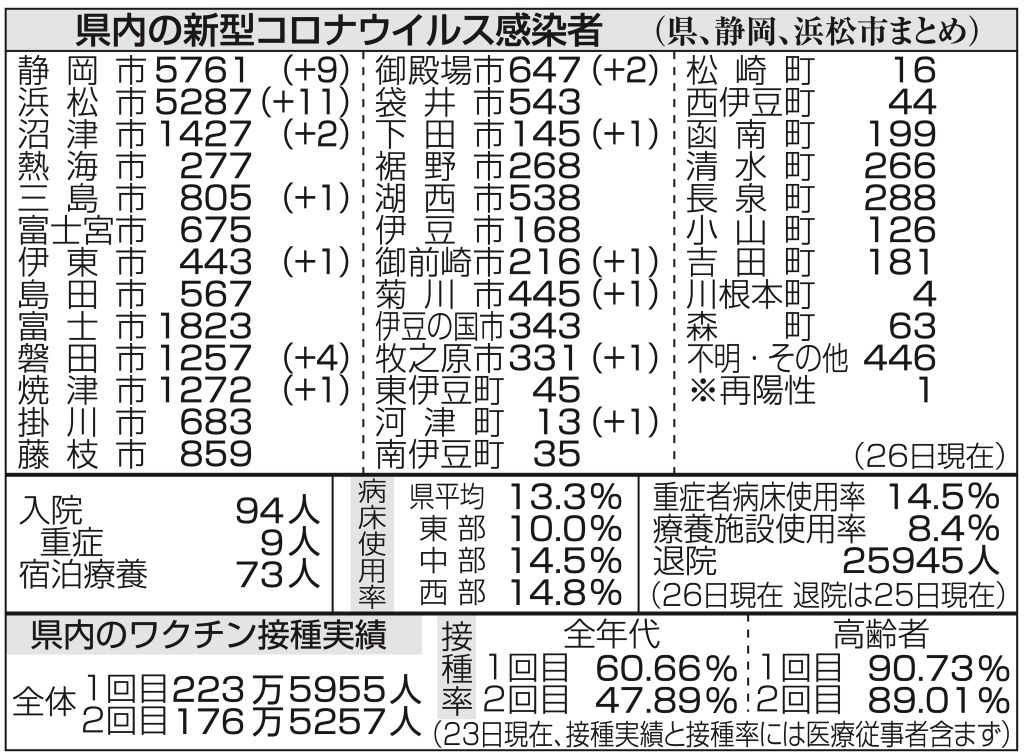 静岡県ニュース > 36人感染 30人台は3日連続 26日の静岡県内【新型コロナ】(あなたの静岡新