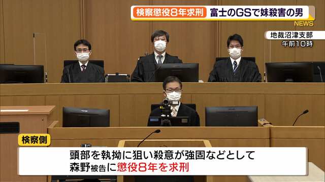 懲役8年求刑 富士のガソリンスタンドで妹殺害の男(静岡県)(静岡放送(SB