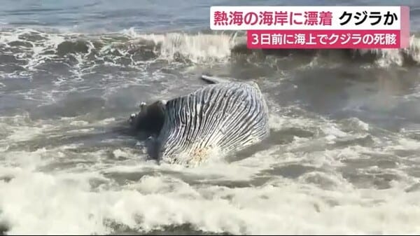 静岡・熱海市の海岸に漂着 ザトウクジラか 付近では死骸漂流の情報も - htt