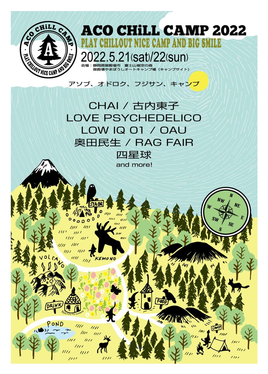 『ACO CHiLL CAMP 2022』第一弾出演者に奥田民生、LOVE PSYCHEDELICO、CHAI、OAUら8組 – めるも – めるも https://t.co/44d6ZDzL2Z #静岡県 #静岡県東部 #御殿場市 https://t.co/OEodmTtW7N
