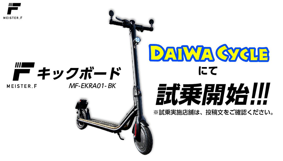 ダイワサイクル(一部取扱店舗)で、電動キックボード「Meister F」試乗実施中! – PR TIMES https://t.co/UFn8cj8XeH #静岡県 #静岡県東部 #長泉町 https://t.co/cVoGeKGL6L