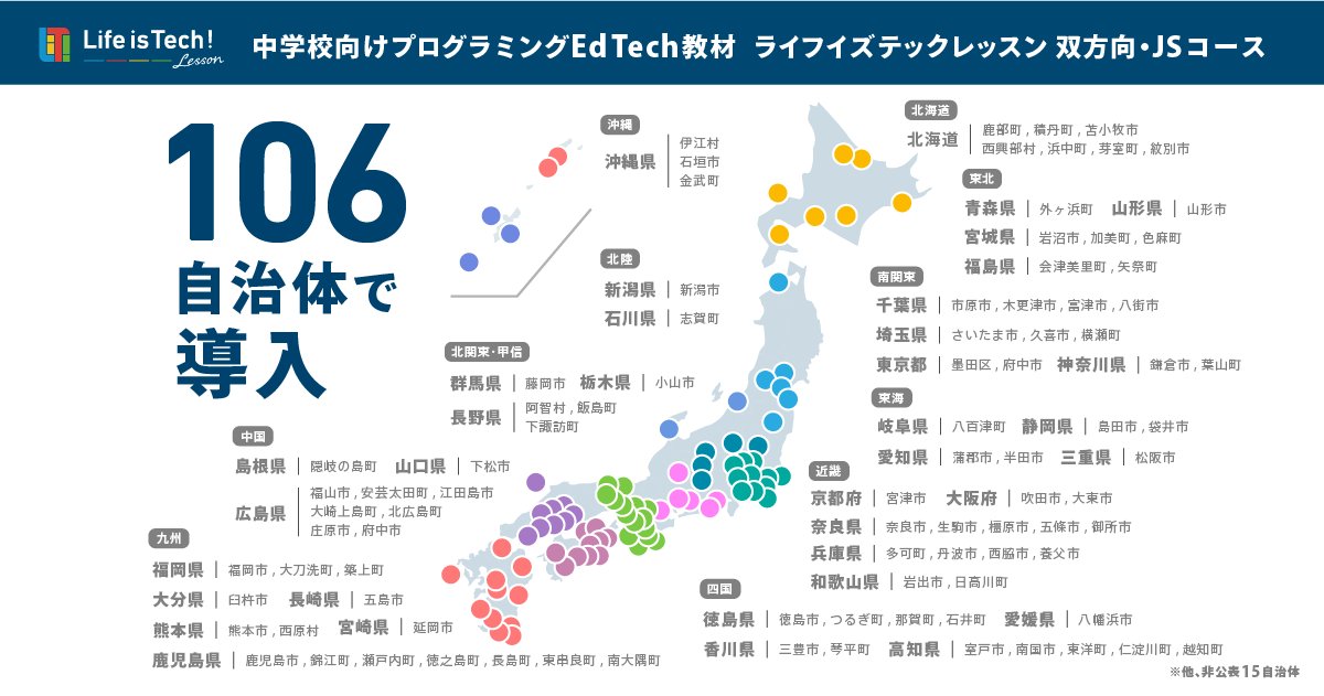 中学向けプログラミング教材「ライフイズテック レッスン」、106自治体で市区町村内全校に導入 – こどもとIT https://t.co/mGTrdXr4q9 #静岡県 #静岡県西部 #袋井市 https://t.co/oTLSruvk2Y
